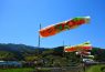 高知では端午の節句に、こいのぼりと子供の名前を入れたのぼりを立てます。